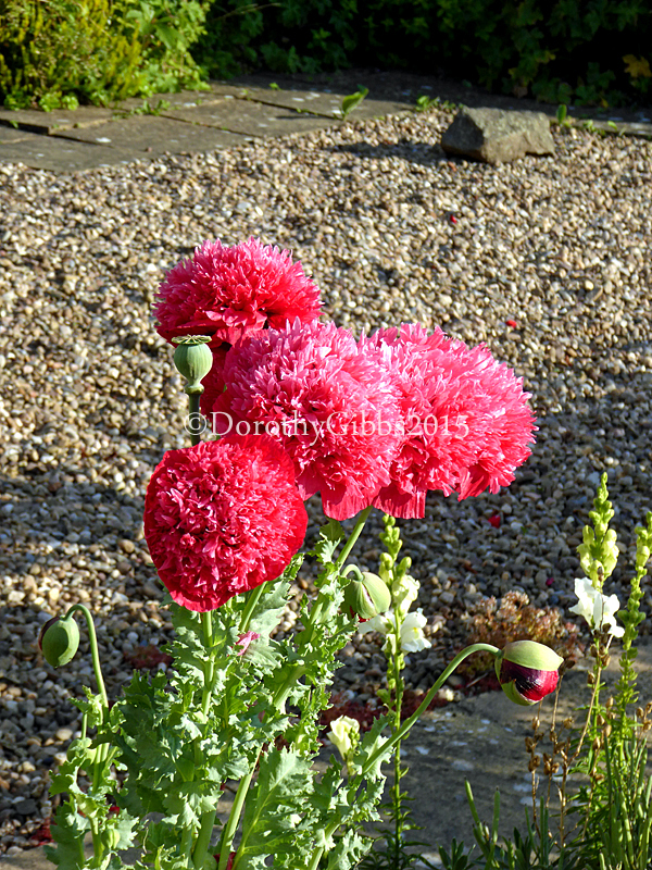 These poppies are like huge tissue paper balls on a plate! This plant had 11 blooms on it at one point