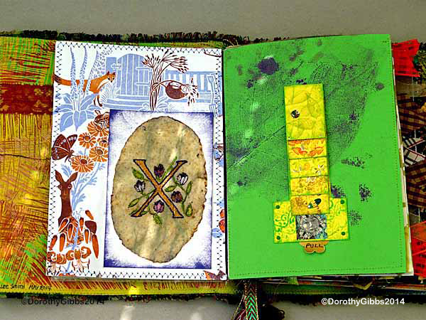 A few months ago my friend Ilze Smith brought a lovely journal to the guild to show us. I asked her if she would make one for me too. The only input I had was to say that I would like the theme to be Spring and Autumn, my favourite seasons. the rest was entirely up to her.